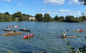 it 14 Aktiven war die Bremer Mannschaft deutlich am stärksten beim 53. Riesebusch Abfahrtsrennen und gleichzeitig den diesjährigen norddeutschen Meisterschaften im Kanu-Wildwasserrennsport vertreten. Wegen des straffen Zeitplans von jeweils zwei Sprintläufen auf der Schwartau (ca. 300m) und den anschließenden Classicrennen (ca. 1,2 Kilometer bzw. ca. 2,3 Kilometer auf der Wakenitz) im Einzel und in der Mannschaft ging es für alle Sportler schon sehr früh los. Besonders erfreulich war die starke Bremer Vertretung im Schülerbereich: Obwohl die Schüler und Schülerinnen im Training meist in Kanu-Rennsportbooten trainieren, stellten sie auf der Schwartau ihr Können auch in den Abfahrtsbooten, mit denen sie schnell um die engen Kurven fuhren, eindrucksvoll unter Beweis. Die hervorragenden Ergebnisse begeistern um so mehr, weil es für einige der Störtebeker die erste Abfahrtsregatta-Regatta überhaupt war, an der sie teilgenommen haben.